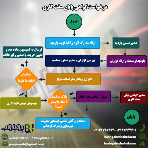 تبصره ۱: در صورتی که پلاک بیشتر از ۴ سقف و بیشتر باشد به اخذ تائید از واحد : ۱- آتش نشانی ۲- ایستایی معاونت شهرسازی دارد که استعلام آن توسط واحد تشکیل پرونده انجام می گیرد( فرمهای ۱۸ و ۲۰ توسط شهرداری)